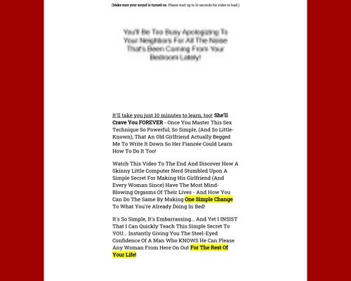 Watch This Video To The End And Discover How A Skinny Little Computer Nerd Stumbled Upon A Simple Secret For Making His Girlfriend (And Every Woman Since) Have The Most Mind-Blowing Orgasms Of Their Lives – And How You Can Do The Same By Making One Simple Change To What You’re Already Doing In Bed!