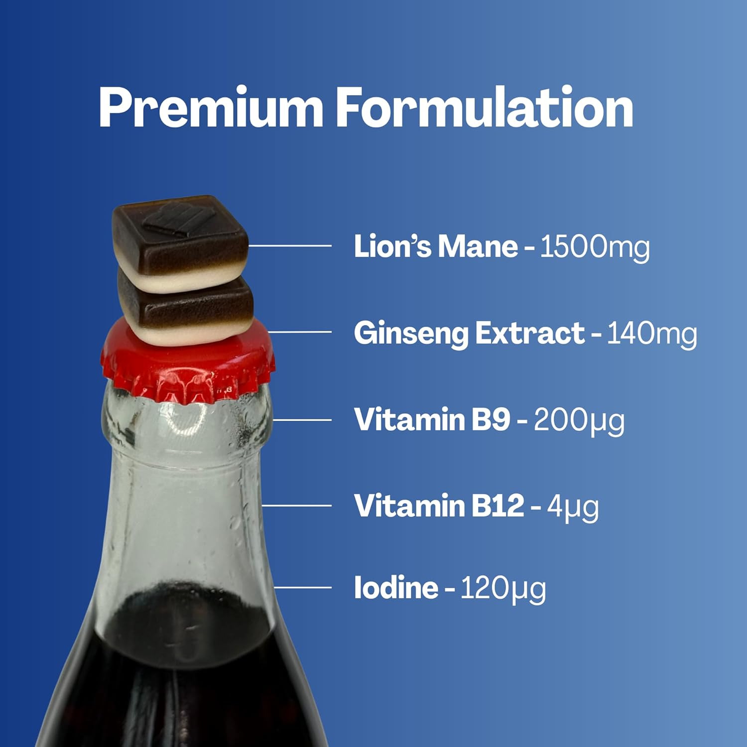 GREAT TASTE & TEXTURE: Enjoy the bold, refreshing cola flavor that turns your focus routine into a treat. With a smooth, chewy texture and no artificial aftertaste, these lion’s mane gummies make daily supplementation easy and enjoyable.